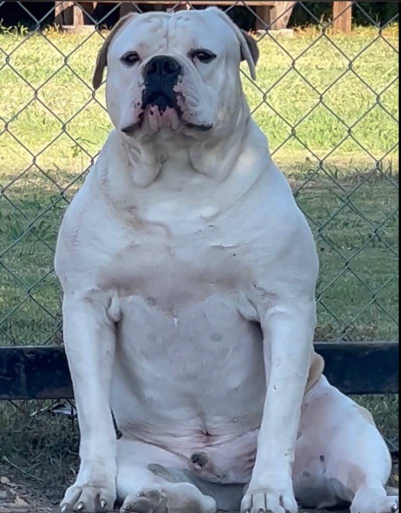This Kanyon Kuhlman of Mac’s. Kanyon comes from a long line of Champions and is definitely a magnificent American Bulldog. He is the Sire to pups born 4/28/23.