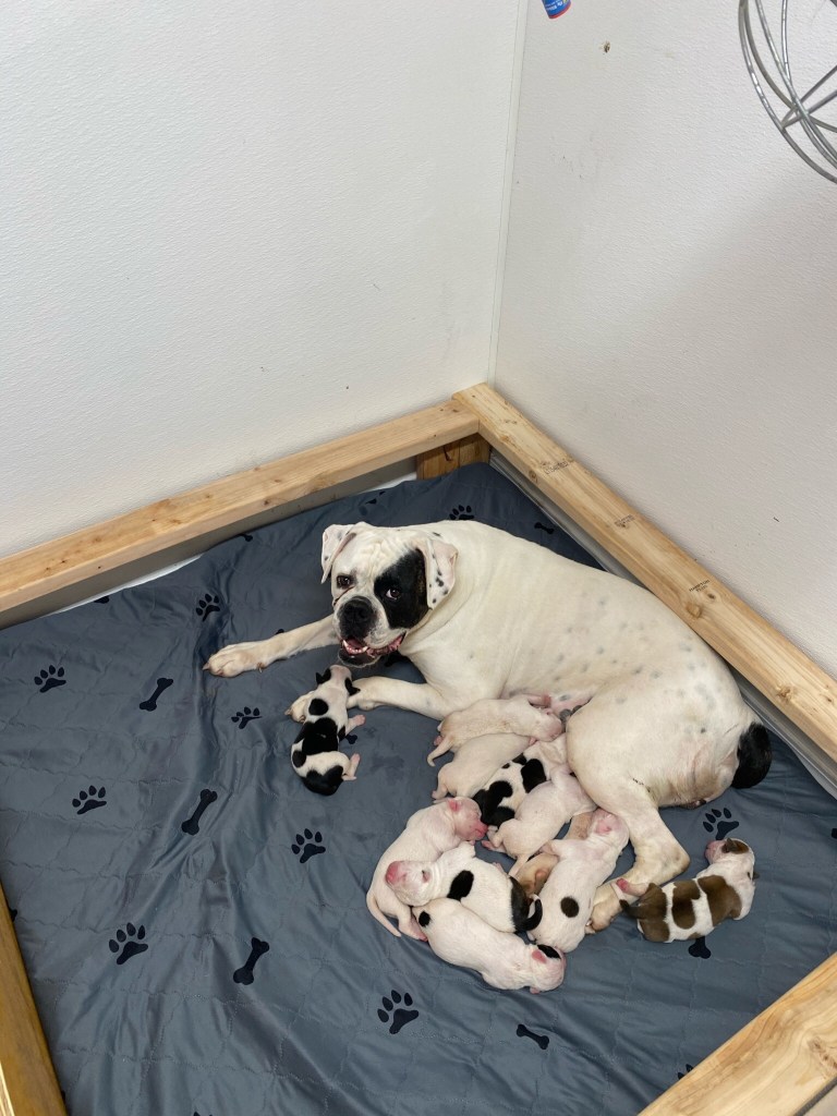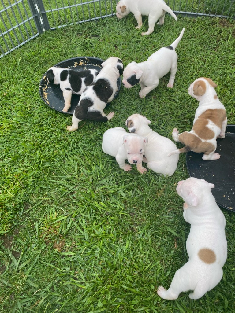 All of our pups are NKC Registered . They are UTD on all vaccinations/deworming and are doggy door trained by the time they are 8 weeks old. Our dogs live and are socialized in a kid friendly environment. We take great pride in producing American Bulldogs with exceptional temperaments. Our Dogs are bred to become part of the family. They are Bold, Beautiful, Loyal and Strong and will love and protect their family with every ounce of their being. We respectfully ask that if you cannot provide the love and devotion that is required with owning an American Bulldog, that you look elsewhere for your Pet. We want all of our pups to go to loving and caring homes and to be treated with the love and respect they so deserve 🐾❤️🐾